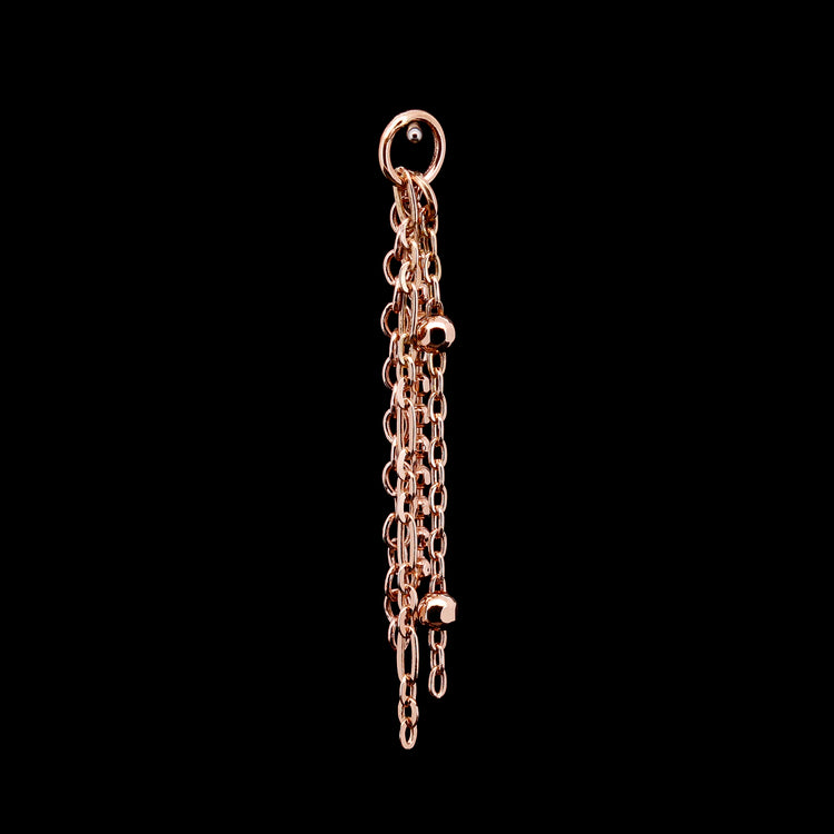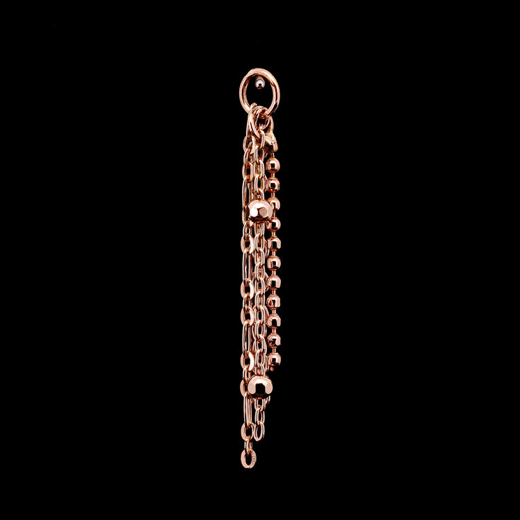 Quad chain charm with one strand each of cable, figaro, and two styles of bead chain, all 14kt Rose Gold.