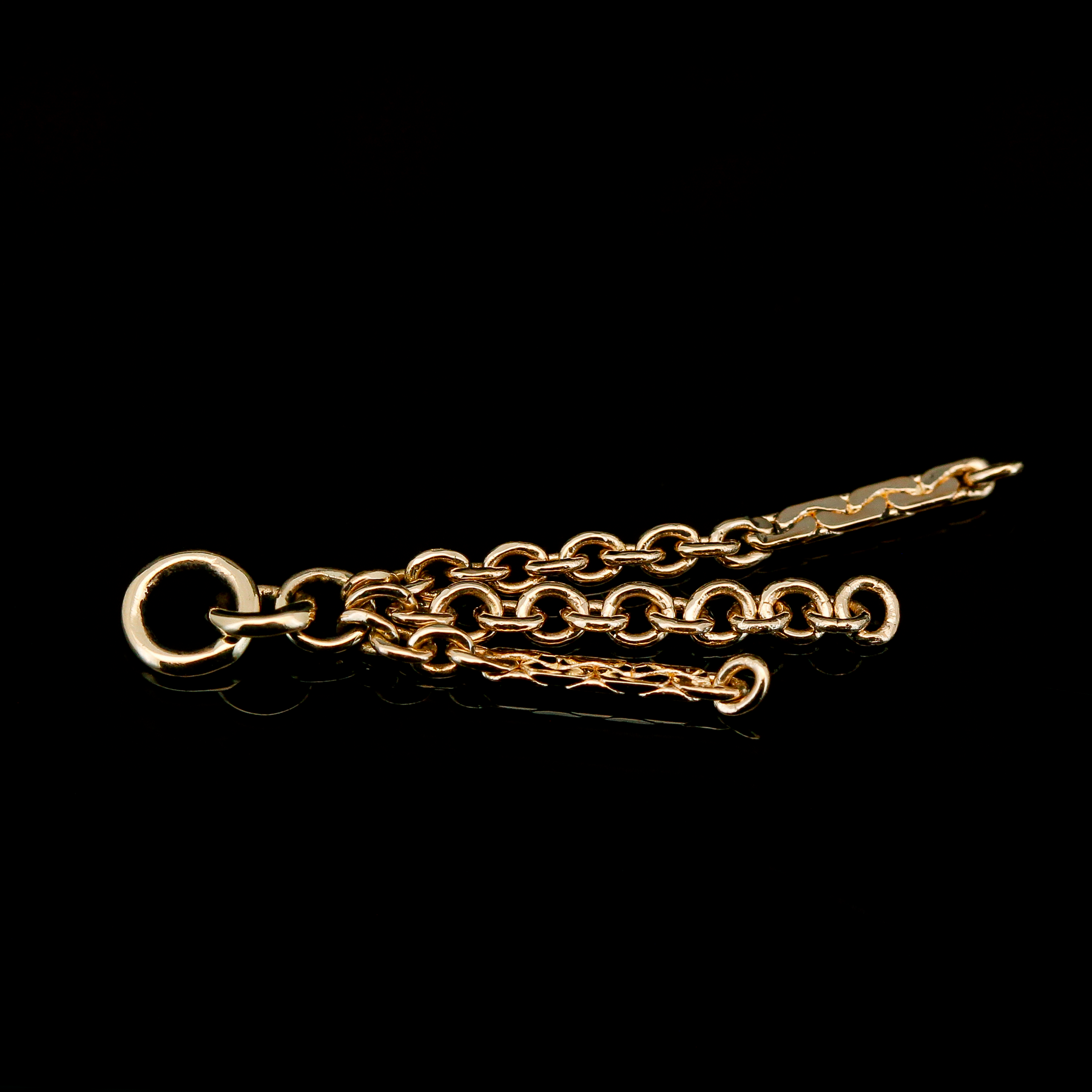 14kt Yellow Gold charm with two segments of dap chain and a segment of cable chain.